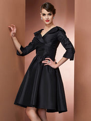 A-Line/Princess V-neck 3/4 Sleeves Short Taffeta Mother of the Bride Dresses