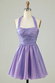 A-Line Halter Homecoming Dress With Pleated Lovely Prom Dress Short/Mini Birthday Party Dress