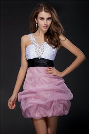 Ball Gown V-neck Sleeveless Short Beading Sash Organza Elastic Woven Satin Cocktail Dresses - US 2 / UK 6 / EU 32