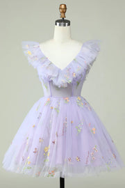 Lavender Off The Shoulder Embroidery Homecoming Dress With Ruffles - US 2 / UK 6 / EU 32