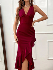Party Dress Homecoming Dress Wedding Guest Dress Bodycon Sheath Dress Midi Dress Black Wine Green Sleeveless Pure Color Ruffle Spring Summer V Neck Elegant