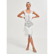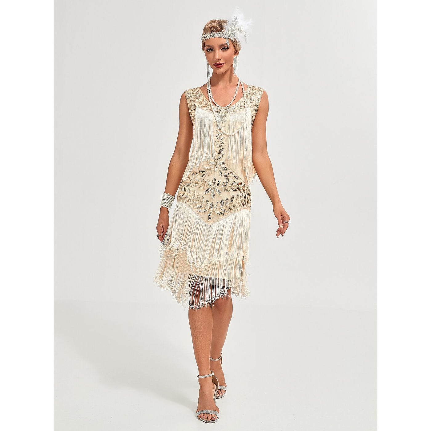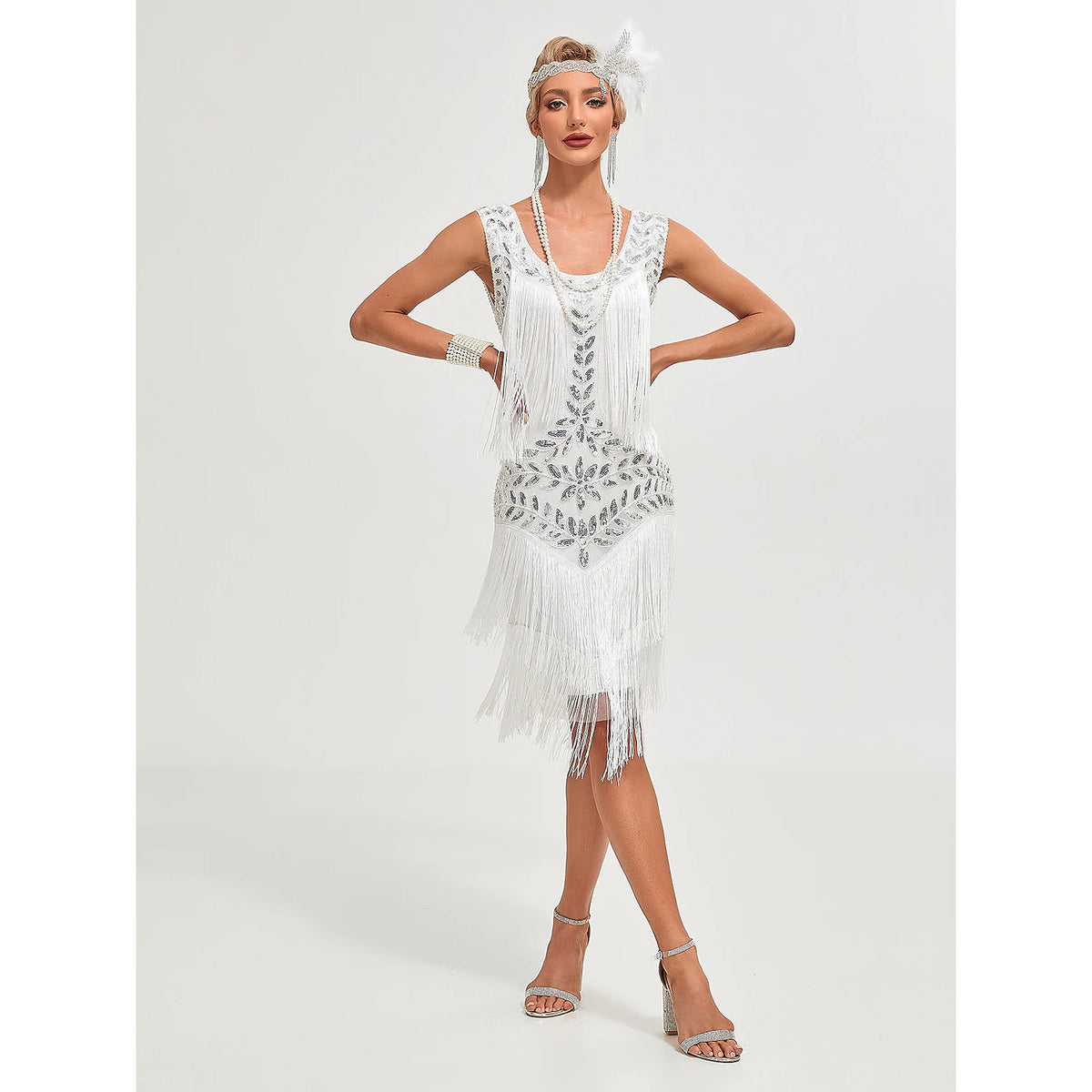Roaring 20s 1920s Vacation Dress Cocktail Dress Flapper Dress Dress Masquerade The Great Gatsby Charleston Women's Sequins Tassel Fringe Cosplay Costume New Year Party / Evening Homecoming Prom Dress - White