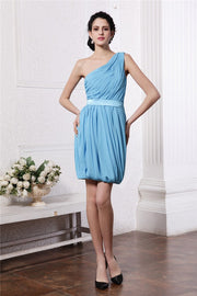 Sheath/Column One-Shoulder Sleeveless Pleats Short Chiffon Cocktail Dresses - US 2 / UK 6 / EU 32