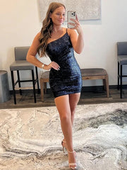Sheath/Column Sequins One-Shoulder Sleeveless Short/Mini Dresses