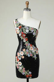 Sheath One Shoulder Sequins Homecoming Dress With Flowers - US 2 / UK 6 / EU 32