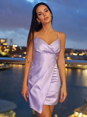 Sheath Silk like Satin Ruched V-neck Sleeveless Short Mini Homecoming Dresses