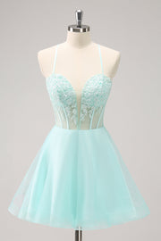 Sparkly A Line Corset Sequin Short Green Homecoming Dress with Appliques
