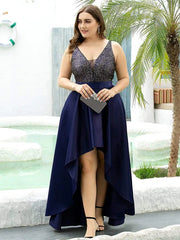 Sparkly Plus Size Prom Dresses for Women with Irregular Hem - Navy Blue