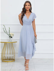Women's Prom Dress Party Dress Homecoming Dress Long Dress Maxi Dress Blue Sleeveless Pure Color Layered Summer Spring Fall V Neck Fashion Wedding Guest Evening Party Summer Dress - US 2 / UK 6 / EU 32