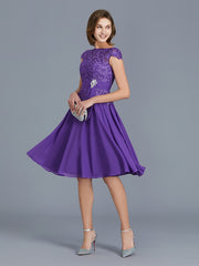 A-Line Bateau Chiffon Knee-Length Beading Sleeveless Mother of the Bride Dresses