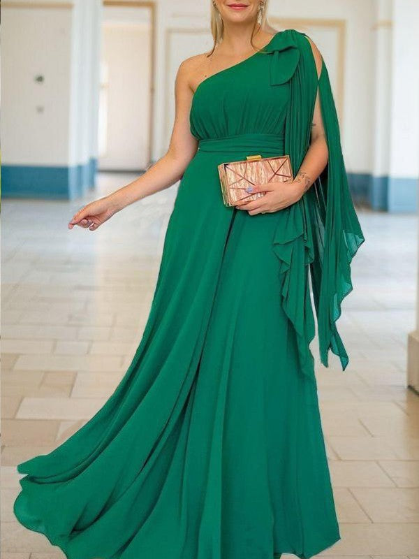 A-Line Chiffon Ruched One-Shoulder Sleeveless Floor-Length Mother of the Bride Dresses