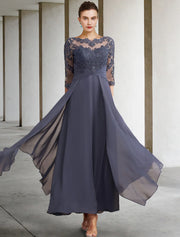 A-Line Mother of the Bride Dress Plus Size Elegant Chiffon Lace Half Sleeve Prom Dress with Appliques - US 2 / UK 6 / EU 32