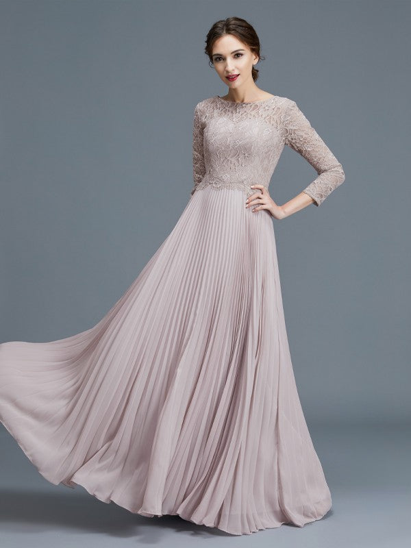 A-Line Scoop 3/4 Sleeves Lace Chiffon Floor-Length Mother of the Bride Dresses