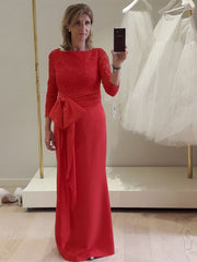 A Line Sheath/Column Stretch Crepe Lace Scoop Long Sleeves Floor-Length Mother of the Bride Dresses