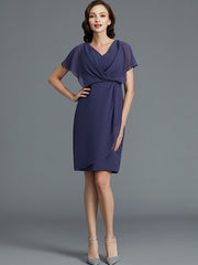 A Line Sheath/Column V-neck Short Sleeves Chiffon Knee-Length Mother of the Bride Dresses