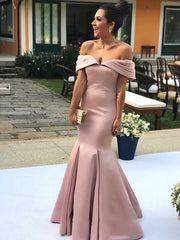 A Line Trumpet/Mermaid Satin Ruffles Off-the-Shoulder Sleeveless Floor-Length Mother of the Bride Dresses