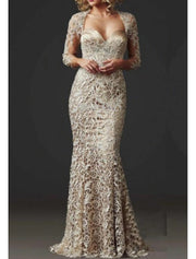 Mermaid / Trumpet Floor Length Lace Wedding Guest 3/4 Length Sleeve Mother of the Bride Dress - US 2 / UK 6 / EU 32