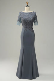 Scoop Neck Short Sleeve Mother of Bride Dress With Appliques