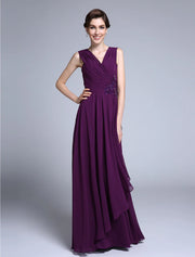 Sheath / Column Mother of the Bride Dress Elegant V Neck Floor Length Chiffon Sleeveless No with Criss Cross Sequin - US 2 / UK 6 / EU 32