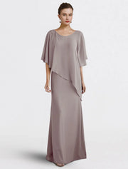 Sheath / Column Mother of the Bride Dress Wedding Guest Plus Size Elegant V Neck Floor Length Chiffon Half Sleeve with Beading Fall - US 2 / UK 6 / EU 32
