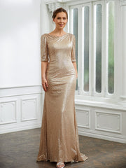 Sheath/Column Sequins Ruched 1/2 Sleeves Sweep/Brush Train Mother of the Bride Dresses