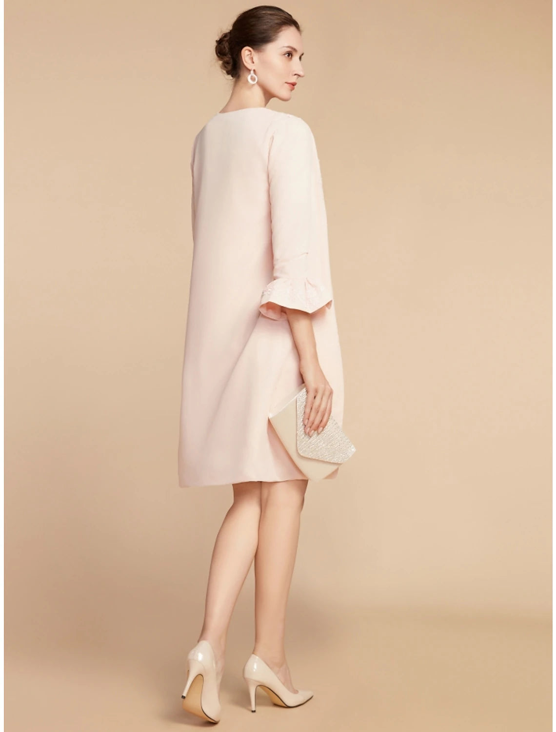Two Piece A-Line Mother of the Bride Dress Wedding Guest Elegant Petite Jewel Neck Short / Mini Lace Stretch Fabric 3/4 Length Sleeve with Bow(s) Ruffles Solid Color - US 2 / UK 6 / EU 32