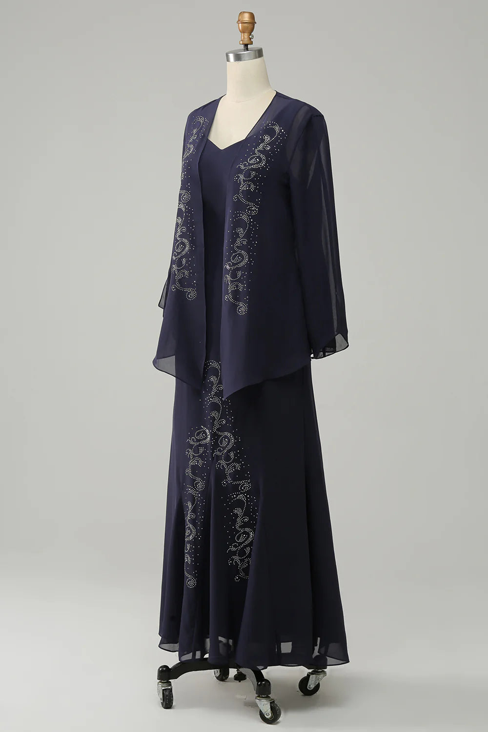 Two Pieces Sleek Glitter Sparking Long Mother of the Bride Dress