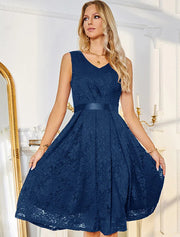 A-Line Cocktail Dresses Vintage Dress Party Wear Cocktail Party Knee Length Sleeveless V Neck Belt / Sash Lace - US 2 / UK 6 / EU 32
