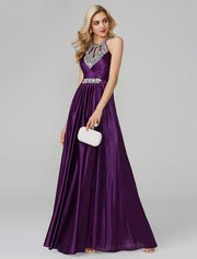 A-Line Little Black Dress Dress Party Wear Floor Length Sleeveless Halter Silk Backless with Crystals Sequin - Show As picture