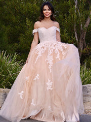 A-Line/Princess Tulle Applique Off-the-Shoulder Sleeveless Floor-Length Dresses Party Dresses Formal Dresses