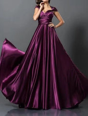 A-Line Wedding Guest Dresses Convertible Infinity Dress Party Wear Court Train Sleeveless One Shoulder Convertible Cotton Backless with Glitter Pleats Ruched - Show As picture