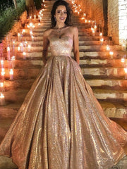 Ball Gown Ruffles Sleeveless Sweep/Brush Train Sweetheart Dresses with Sequins