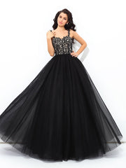 Ball Gown Straps Applique Sleeveless Long Net Quinceanera Dresses - Black