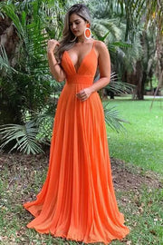 Charming A Line V-neck Spaghetti Straps Long Prom Dress Pleated Sexy Party Dress Elegant Wedding Guest Dress