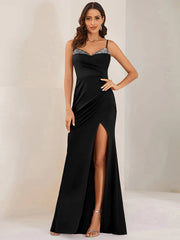 Elegant Pleated Backless High Slit Spaghetti Strap Evening Dress/Prom Dresses Party Dresses Wedding Guest Dresses