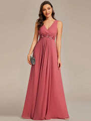 Floral Applique Sleeveless Chiffon Long Formal Evening Dress/Prom Dresses Party Dresses Wedding Guest Dresses