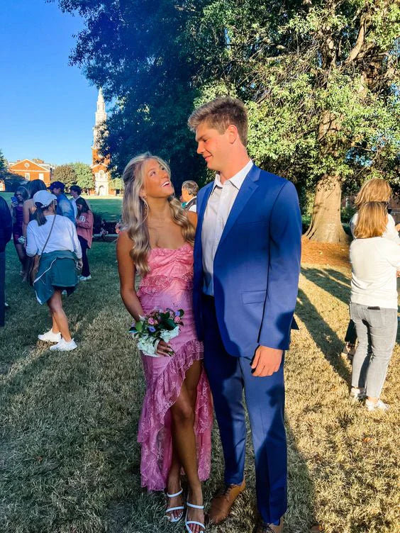 Sexy Strapless Lace Ruffle Prom Dress Long Party Dress Charming Graduation Dress - US 2 / UK 6 / EU 32