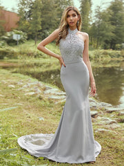Sheath/Column Stretch Crepe Lace Halter Sleeveless Sweep/Brush Train Bridesmaid Dresses Party Dresses Wedding Guest Dresses