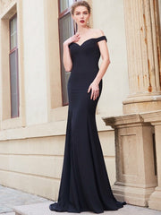 Trumpet/Mermaid Off-the-Shoulder Sleeveless Sweep/Brush Train Ruffles Japanese Satin Dresses - Black