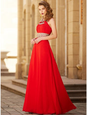 A-Line Evening Gown Elegant Dress Wedding Guest Party Wear Floor Length Sleeveless Halter Neck Chiffon with Rhinestone Slit - US 2 / UK 6 / EU 32