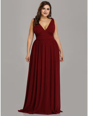 A-Line Evening Gown Plus Size Dress Wedding Guest Formal Evening Floor Length Sleeveless V Neck Bridesmaid Dress Chiffon V Back with Pleats