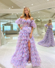A-Line Off The Shoulder Sweetheart Tiered Long Prom Dress