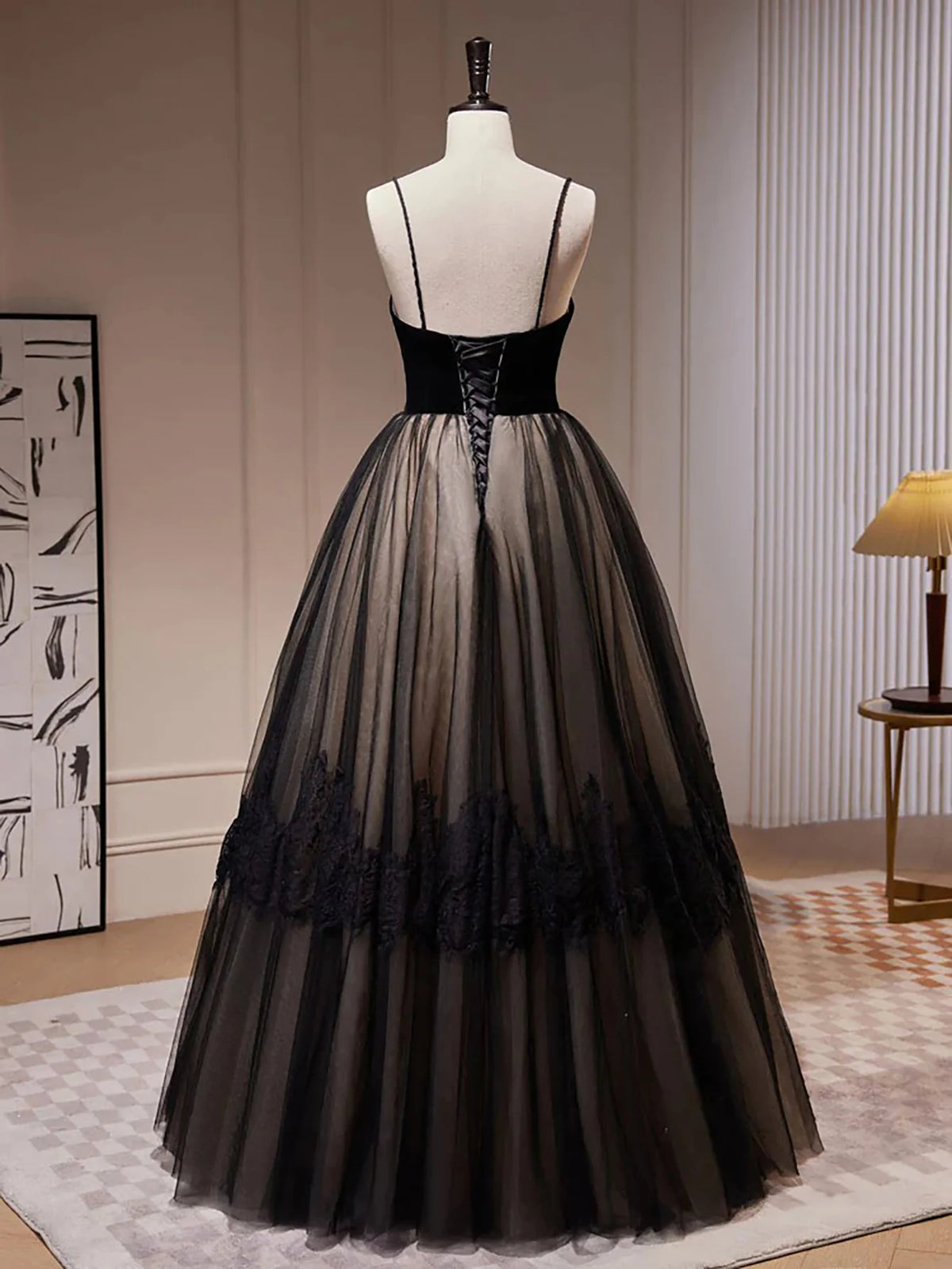 A Line Spaghetti Straps Tulle Long Prom Dress