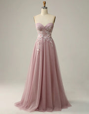 A-Line Sweetheart Strapless Long Prom Dress With Appliques