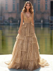 Ball Gown A-Line Prom Dresses Elegant Dress Formal Prom Floor Length Sleeveless V Neck Tulle with Ruched