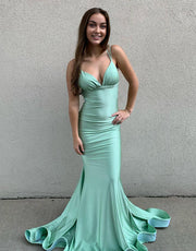 Mermaid Spaghetti Straps Backless Long Prom Dress