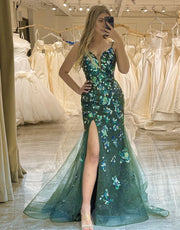 Mermaid Spaghetti Straps Sparkly Dark Green Prom Dress With Split