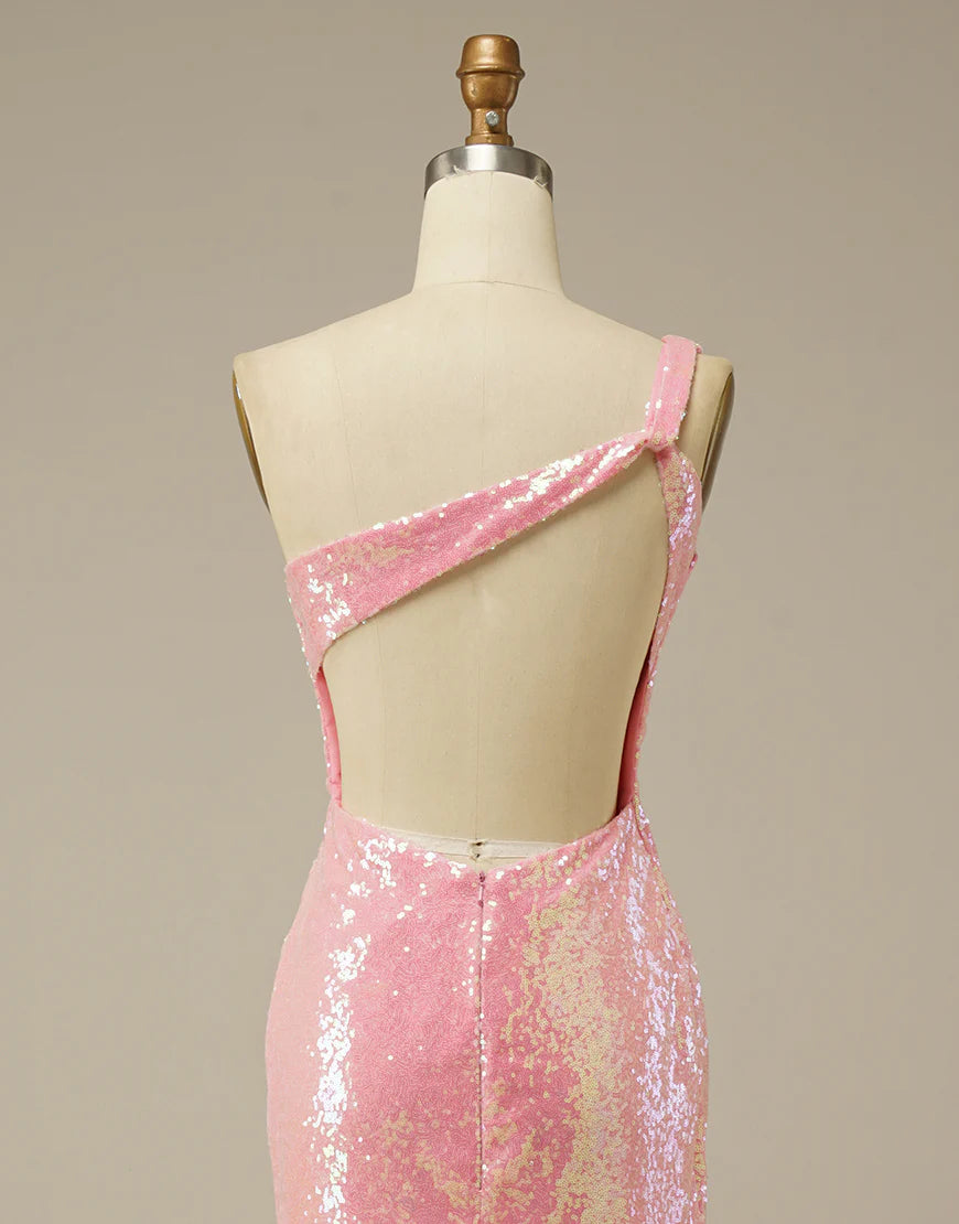 One Shoulder Sleek Glittering Sparkle Sheath Stunning Prom Dress