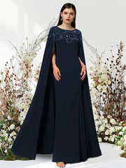 Sheath / Column Prom Dresses Empire Dress Engagement Sweep / Brush Train Sleeveless Jewel Neck Stretch Chiffon with Beading