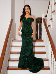 Sheath/Column Velvet Sequins Straps Sleeveless Court Train Dresses - US 2 / UK 6 / EU 32